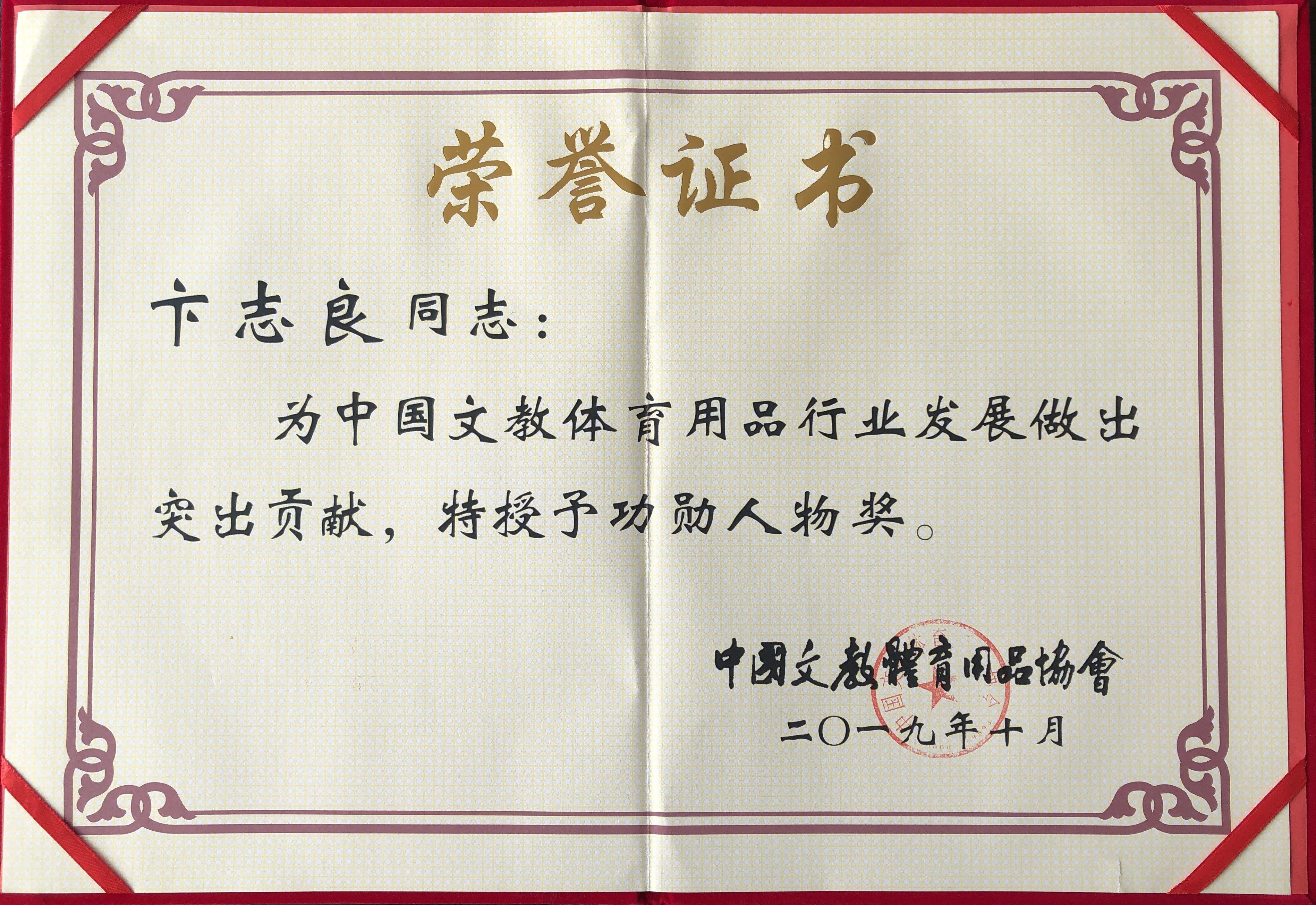 10月18日,中国文教体育用品协会第八届三次理事会暨成立三十周年庆典大会在北京人民大会堂隆重召开。1989—2019三十年间,我国文教体育用品行业发生了翻天覆地的变化,取得了辉煌的成绩。为弘扬艰苦创业、改革创新精神,鼓舞全行业奋勇前行的斗志,暨协会成立三十周年之际,文体协会隆重表彰一批为行业发展做出突出贡献的模范人物,K8·凯发体育产业集团董事长卞志良荣获“功勋人物奖”。