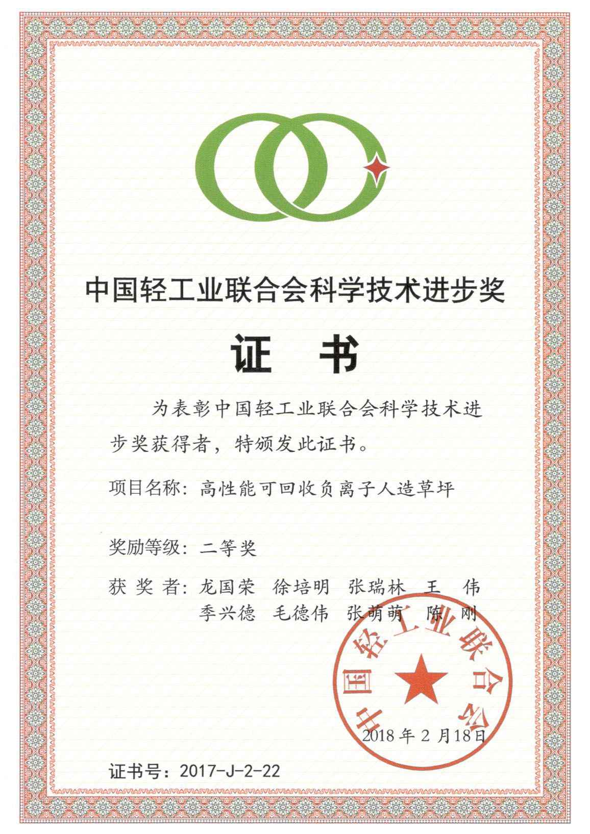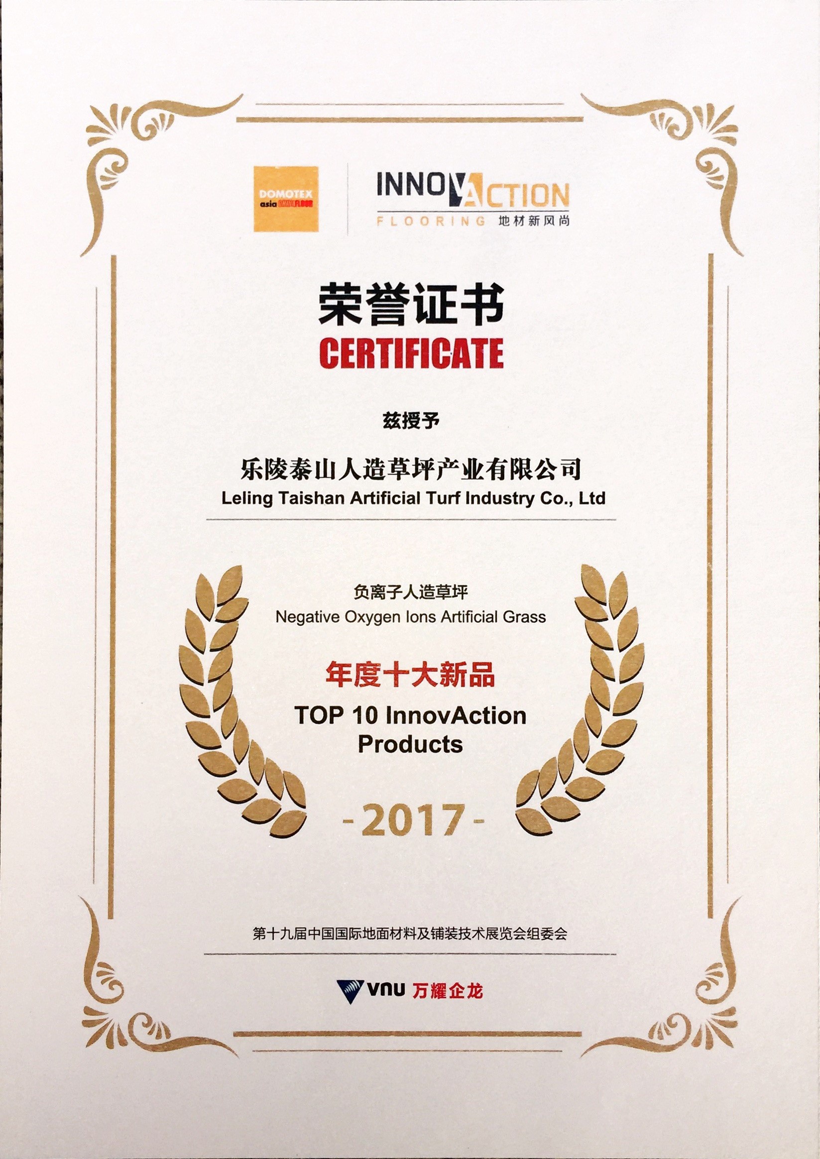 乐陵K8·凯发人造草坪产业有限公司负离子人造草坪年度十大新品2017